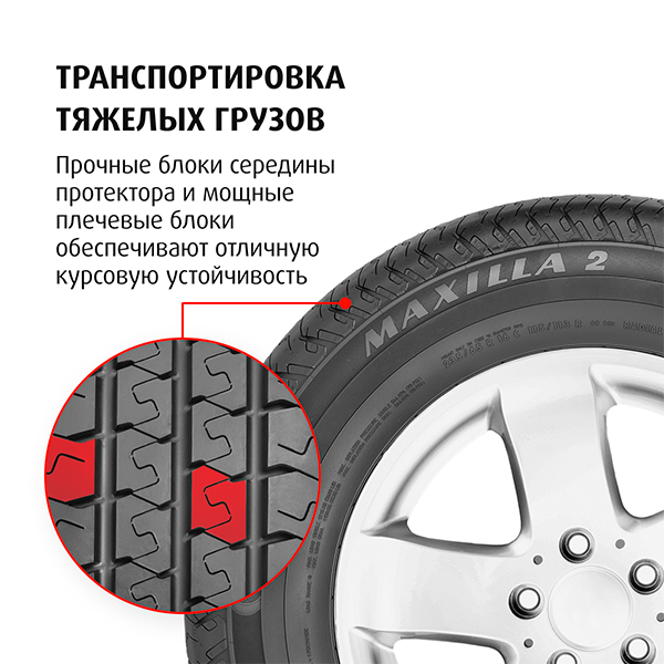 - Твёрдость блоков протектора и их плотное расположение: Высокая курсовая устойчивость при движении легко-грузовых автомобилей.