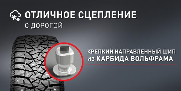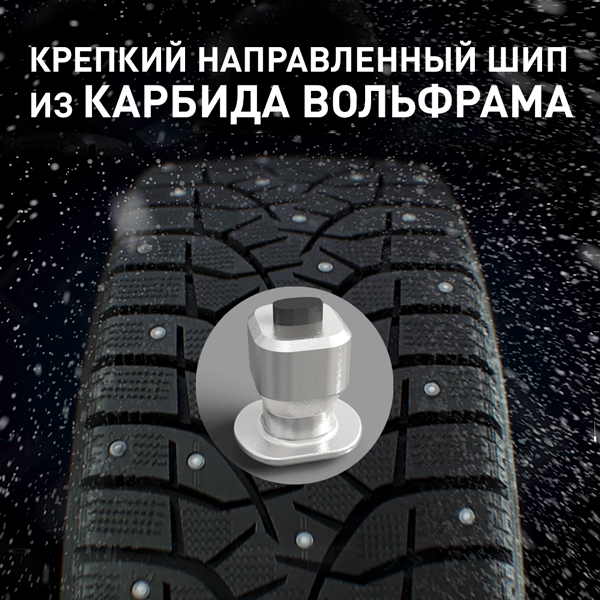 Шипы надежно закреплены в протекторе благодаря двухслойному составу протектора шины.